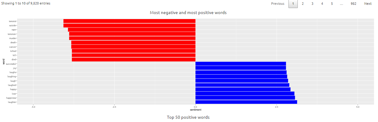 This text analytics app allows even a rookie NLP practioner to parse information out of spreadsheets or text documents allowing them to answer a series of cross-cutting questions. In this project contains customized R’s “tidytext” and “plotly” packages and UVM’s “LabMTsimple” sentiment dictionary for textual and sentiment analysis and various intervention points for users to subset the data, ask it guided questions and produce exploratory data visualizations.
