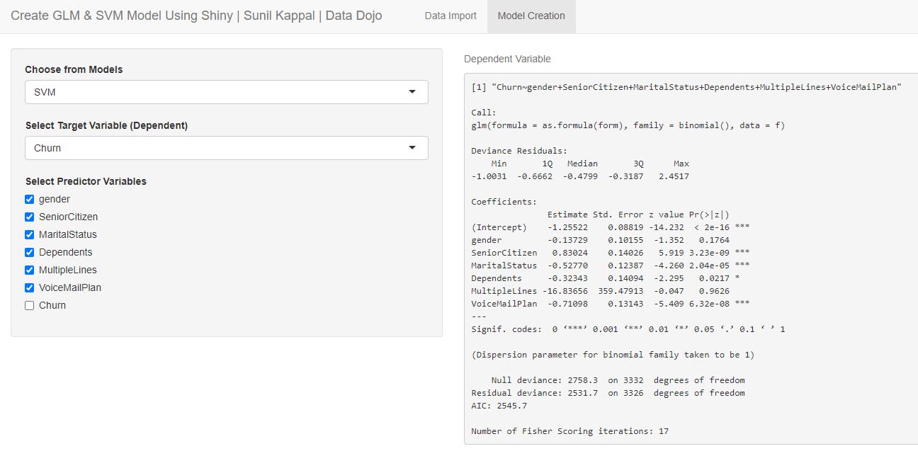 The aim of this project was to create an app that can help its users to perform quick logistic regression routines without having to write numerous lines of codes.This app allows its users to generate Logistic Regression and SVM based models using R’s famous CARET (Classification and Regression Training) Logreg and SVM packages.